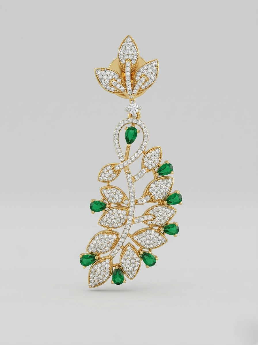 Inspired by the beauty of nature and delicate foliage, these earrings reflect graceful leaf patterns with a touch of sparkle. The green accents symbolize freshness and elegance, making them perfect for both modern and traditional styling.