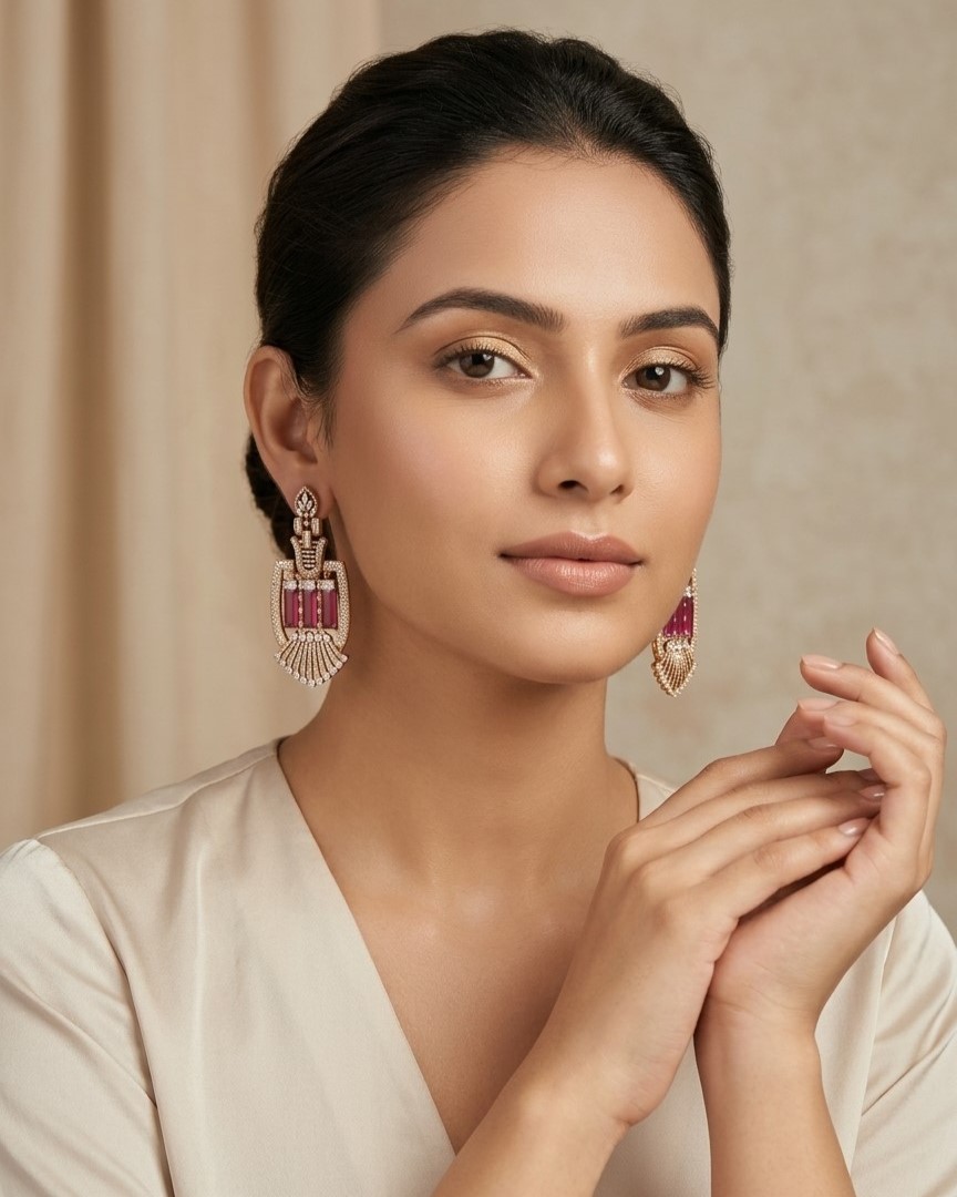 These earrings will look stunning with a formal outfit in colours such as ivory, gold, deep red, the shades of blush, etc., create a sophisticated festive and/or formal wedding ensemble. To best highlight them, the hair should be smooth or pulled back off the face.
